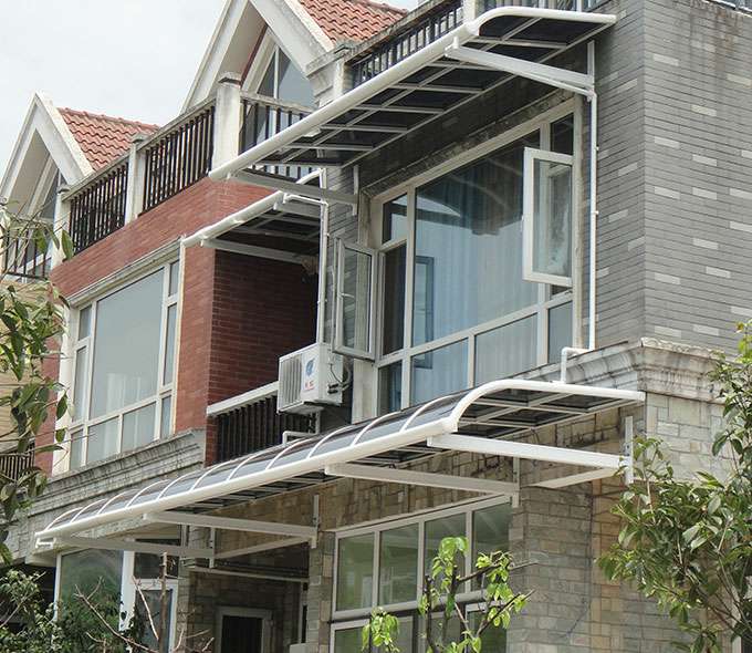 厦门维安绿色农业发展有限公司雨棚系列产品是高强度铝合金和聚碳酸酯板(耐力板)的结合。主体结构全部采用高品质、高强度铝合金材料精加工而成,表面特殊的工艺处理,具备氧化保护,不生锈,不变色,大大提高了雨棚的使用寿命。