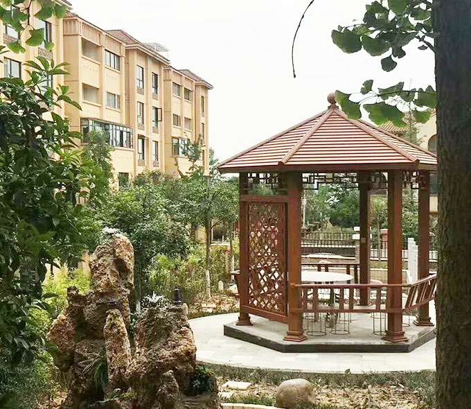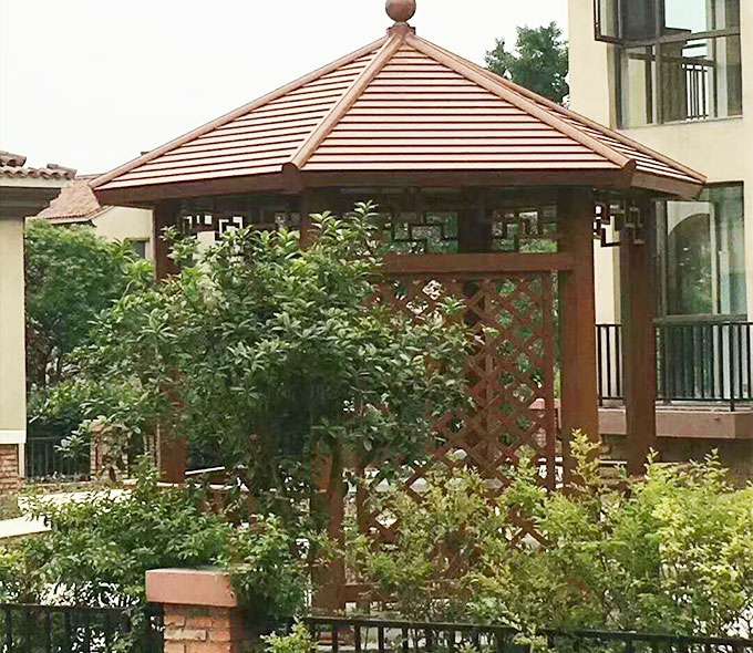 厦门维安绿色农业发展有限公司凉亭系列产品是采用高强度铝合金为原材料,经酸洗铬化,电泳或静电喷涂,木纹转印处理后,精密定制设计,保障安装。它具有防水防潮,不膨胀不变形,防腐蚀,具有逼真的木质感。成为别墅住宅及市政园林等建筑美丽的风景。
